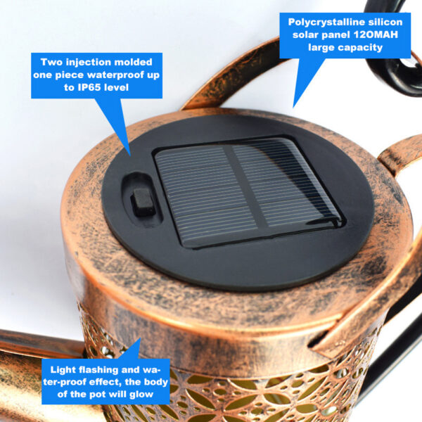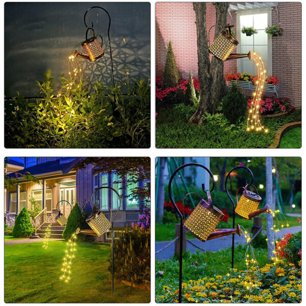 The watering can is made of durable metal adopting Anti-rust treatment, which means that the LED landscape lights can be used on rainy days and the battery will not leak.